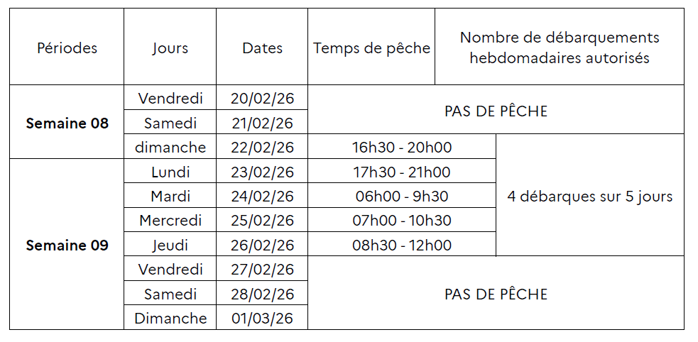 4 débarques autorisées sur 5 jours (du dimanche au jeudi).
