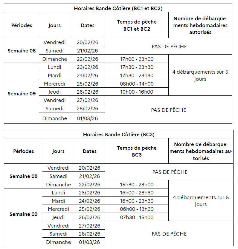HORAIRES ET NOMBRE DE DÉBARQUEMENTS – SEMAINE 9 – CSJ BAIE DE SEINE & BANDE CÔTIÈRE |