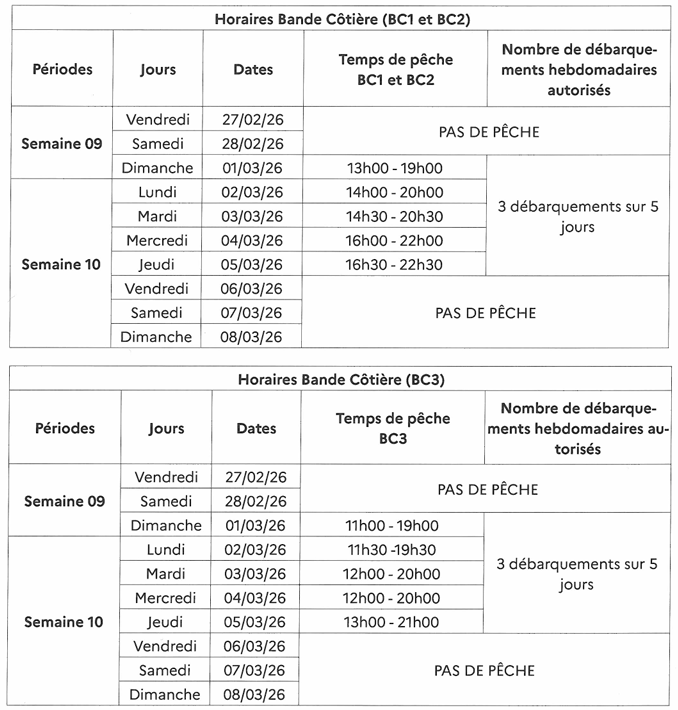 Les modalités d’exploitation de la Coquille Saint-Jacques pour la semaine 10 sont définies comme suit :